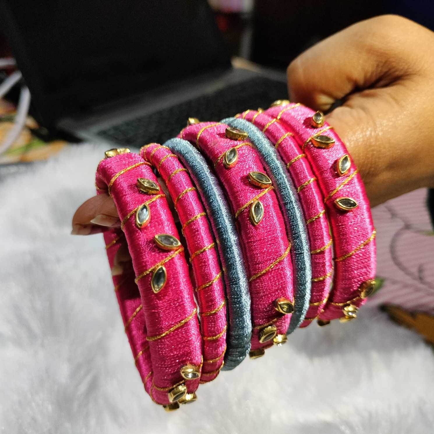Set of 7 Carefully crafted Silk thread bangles, which will enhance your traditional look.